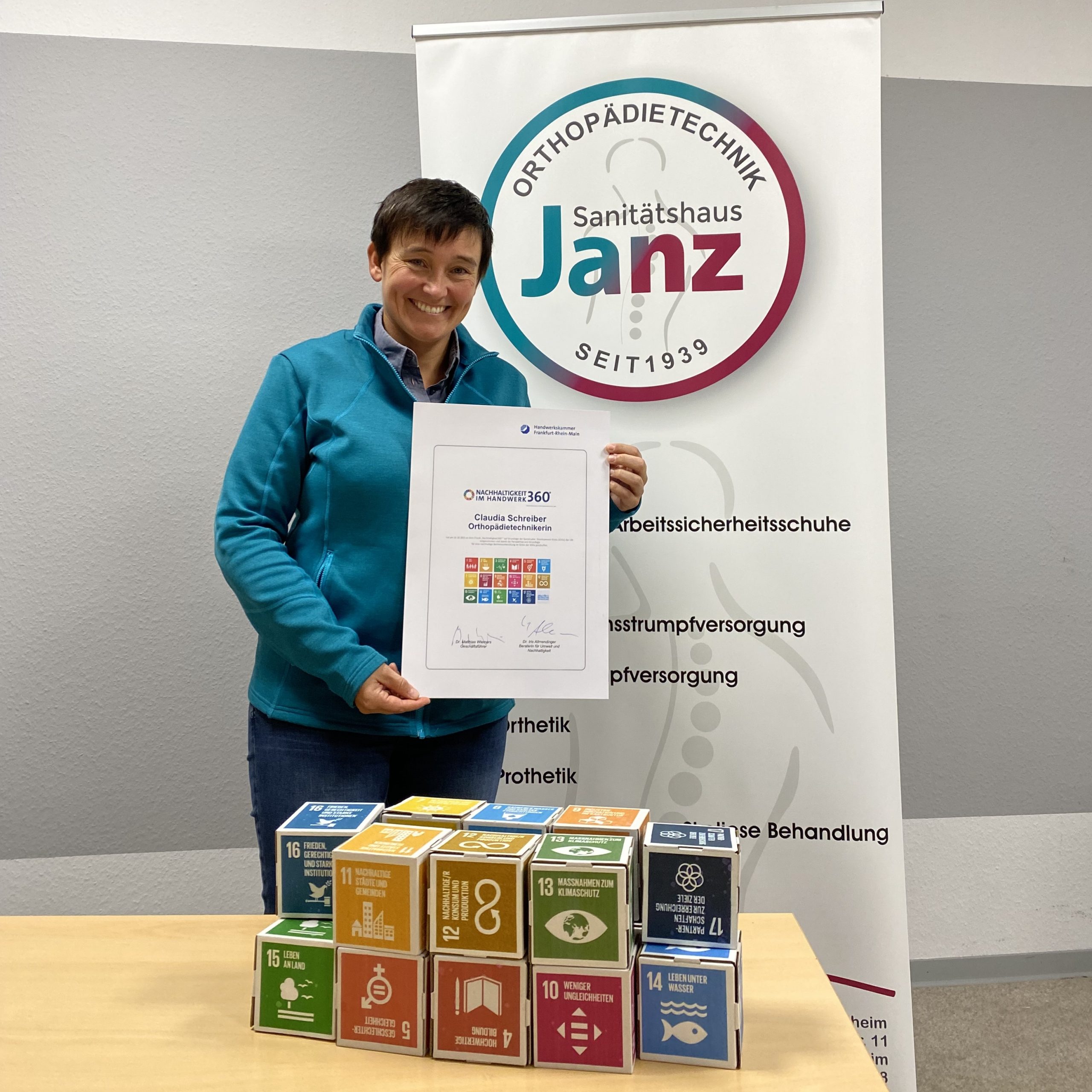 Im Oktober haben wir am Check „Nachhaltigkeit 360 Grad“ der Handwerkskammer Frankfurt/Rhein-Main erfolgreich teilgenommen. Der Check ist ein kostenfreies betriebswirtschaftliches Beratungs- und Analyseinstrument, mit dem Handwerksbetriebe wie wir als Sanitätshaus mit eigener Werkstatt systematisch ihren aktuellen Stand in Sachen Nachhaltigkeit erfassen und bewerten können – und zwar ganzheitlich („360 Grad“) über alle Unternehmensbereiche hinweg.